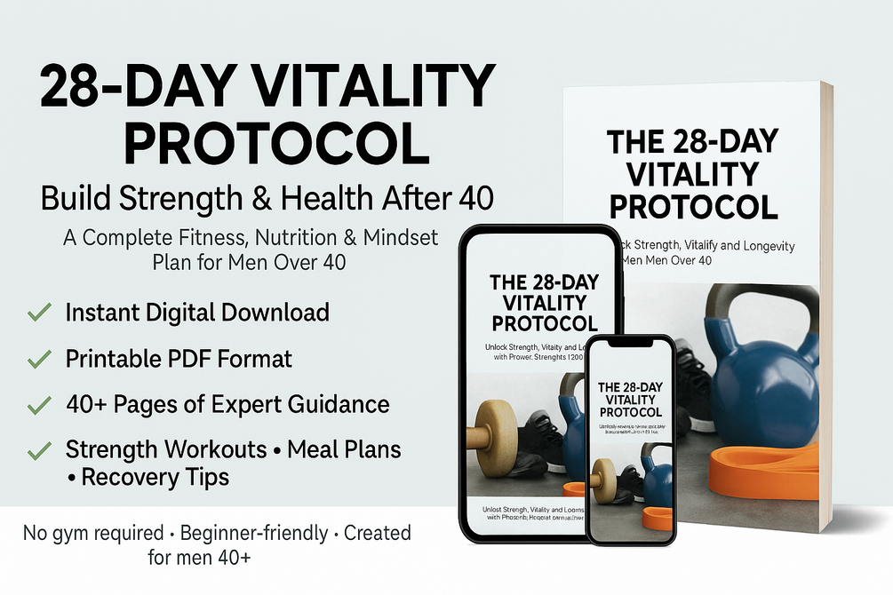 This eBook is your ultimate guide to reclaiming your energy, building muscle, and boosting your overall health. Specifically designed for men over 40, this program combines low-impact, high-effectiveness exercises with a nutrition plan tailored to your unique needs. Whether you’re just starting or ready to refine your fitness journey, this step-by-step guide is your blueprint for lasting results.
